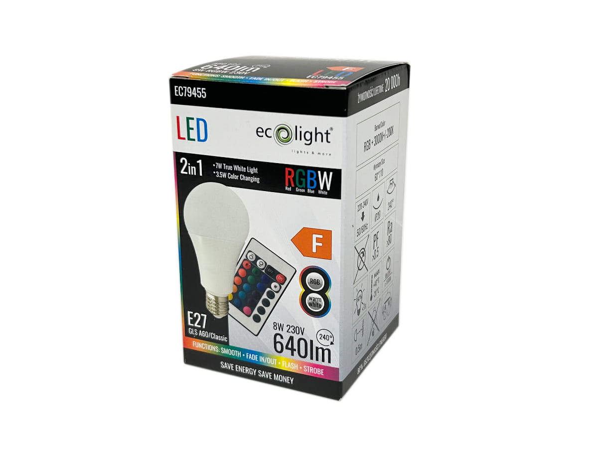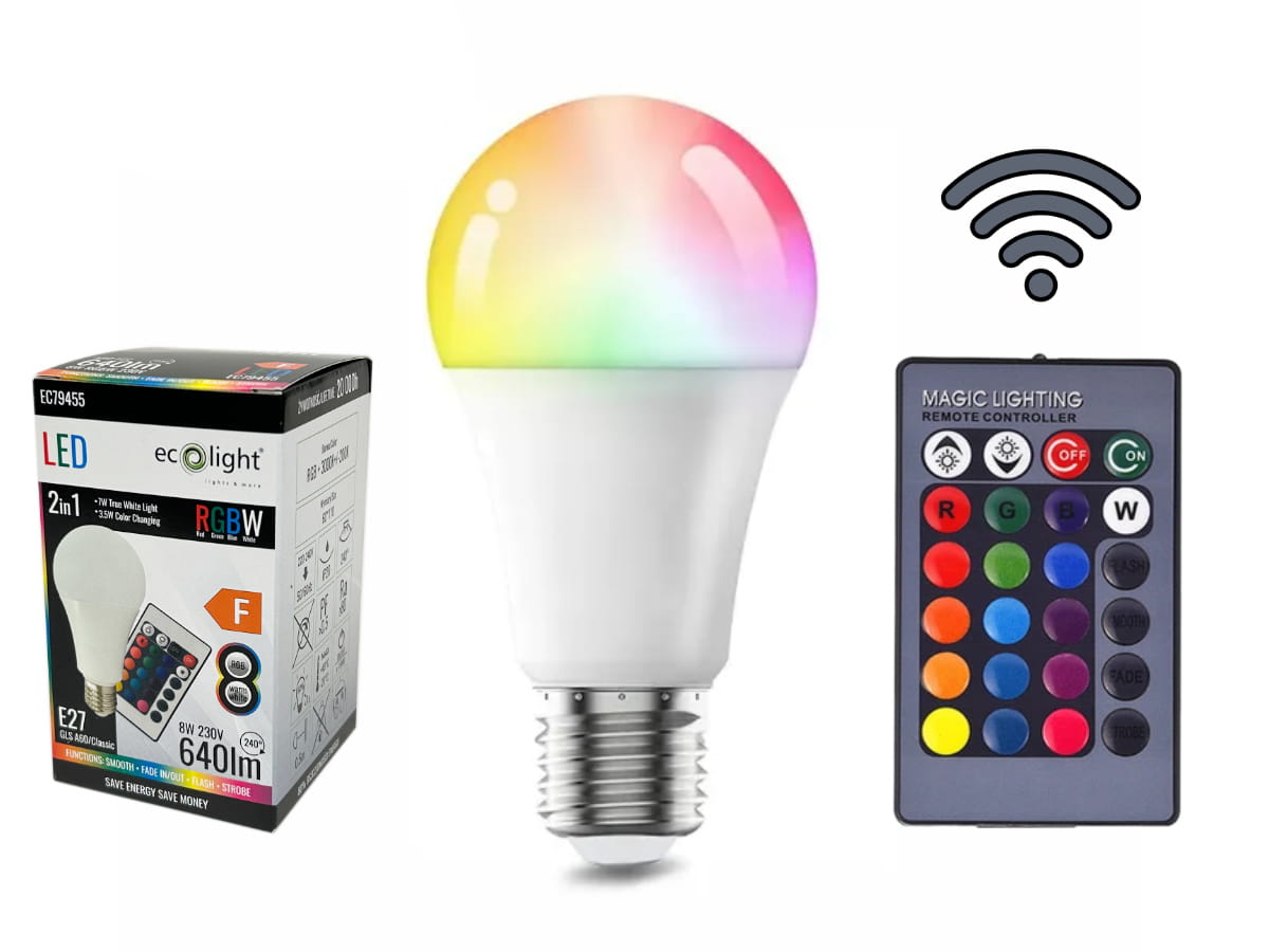 Marzysz o wygodnym kontrolowaniu oświetlenia za pomocą pilota? A może chcesz wypełnić swoje wnętrze niepowtarzalną atmosferą? Przedstawiamy zestaw 10 energooszczędnych żarówek LED E27 sterowanych zdalnie. Pilot umożliwia swobodny wybór jednego z 15 kolorów RGB lub ustawienie białego koloru o ciepłej barwie. Żarówki zużywają tylko 8W energii elektrycznej, generując strumień świetlny w wysokości 640 lm.