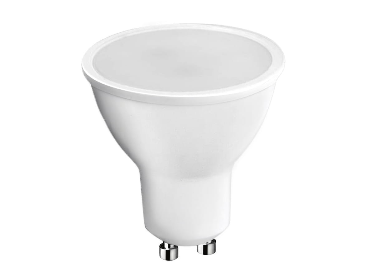 Zestaw 10 energooszczędnych żarówek LED z tradycyjnym trzonkiem GU10. Każda żarówka posiada niski pobór mocy 5W (odpowiednik żarówki 40W starego typu), strumień świetlny w wysokości 450 lm i efektywność świetlną na poziomie 90 lm/W. Produkt charakteryzuje się neutralną temperaturą barwową (4000K), wysokim współczynnikiem oddawania barw CRI: Ra>80, optymalnym kątem świecenia 120° i osiąga do 30 000 h żywotności.