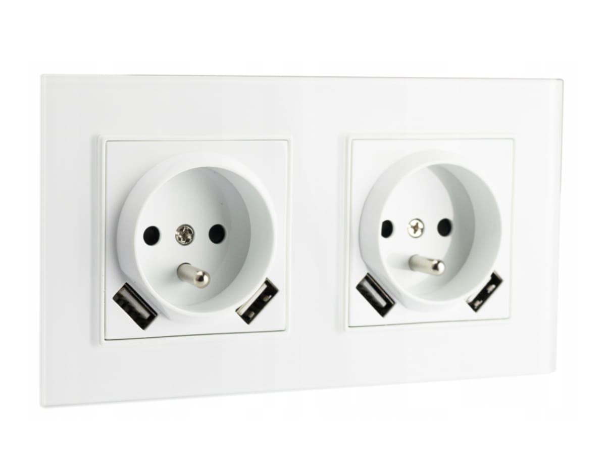 Zestaw złożony z dwóch wielofunkcyjnych gniazd elektrycznych pojedynczych z portami USB w białym kolorze oraz szklanej ramki podwójnej. Produkt stanowi nowoczesne rozwiązanie, które pozwala na jednoczesne korzystanie z tradycyjnych urządzeń elektrycznych oraz ładowanie smartfonów, tabletów i innych sprzętów mobilnych bez potrzeby użycia dodatkowych adapterów. Doskonale komponuje się z różnymi stylami wnętrz, dodając im elegancji i nowoczesnego charakteru. Solidna konstrukcja zapewnia długotrwałe działanie i niezawodność. Prosta instalacja w standardowej puszce o średnicy 60 mm sprawia, że montaż zestawu jest szybki i bezproblemowy. Doskonale sprawdzi się on zarówno w domu i mieszkaniu, jak również biurze oraz wielu przestrzeniach użyteczności publicznej.