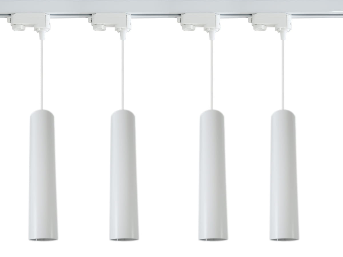 4x Lampa szynowa wisząca GU10 biała trójfazowa + szynoprzewód trójfazowy 2m