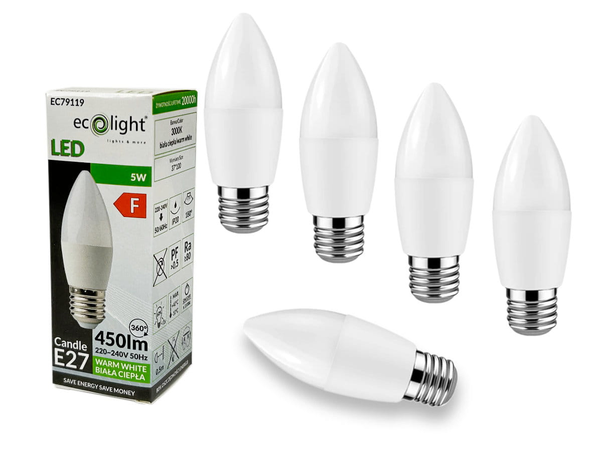 5 szt. x Żarówka LED CANDLE E27 5W 3000K