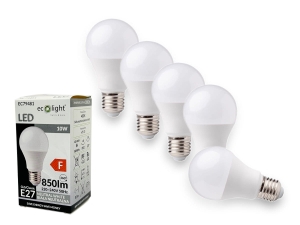 Zestaw 5 energooszczędnych żarówek LED z tradycyjnym trzonkiem E27. Żarówki posiadają niski pobór mocy 10W i strumień świetlny na poziomie 1000 lm. Charakteryzują się neutralną temperaturą barwową (4000K), wysokim współczynnikiem oddawania barw CRI ≥80 oraz optymalnym kątem świecenia 220°. Produkt osiąga do 20 000 h żywotności.